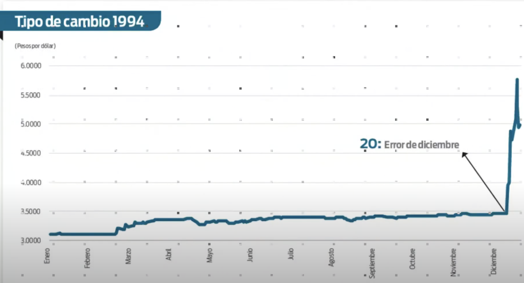 El “error de diciembre” fue una severa crisis económica que estalló en México a finales de 1994 y principios de 1995. El peso mexicano estaba sobrevaluado y las tensiones políticas habían generado desconfianza en los inversionistas extranjeros.